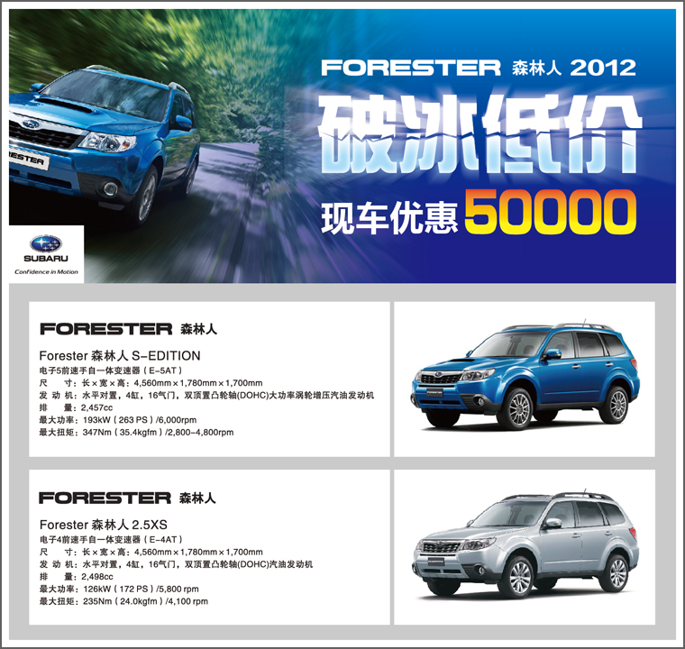 2012款森林人破冰低價!即日起訂購2012款森林人車系即可享