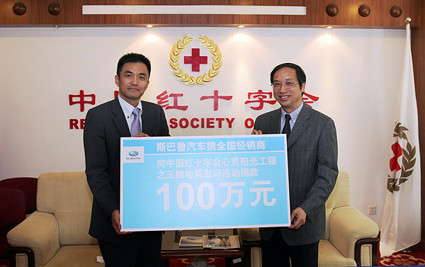 日前,斯巴魯汽車(中國)有限公司攜旗下中冀斯巴魯(北京)汽車銷售有限公司、上海安吉斯巴魯汽車銷售服務(wù)有限公司、意美中國有限公司三大經(jīng)銷商及所有授權(quán)經(jīng)銷商共同向中國紅十字總會(huì)捐款100萬元人民幣,用于對(duì)玉樹地區(qū)地震受災(zāi)人員的心理援助和相關(guān)慰問活動(dòng)。