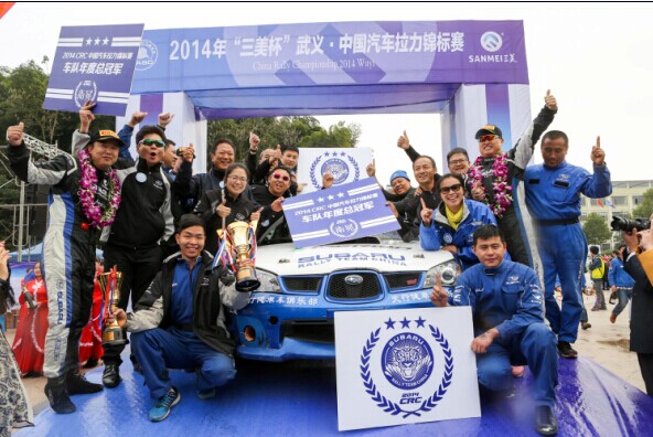 12月1日,2014年“三美”杯浙江武義?中國汽車?yán)﹀\標(biāo)賽(CRC)圓滿落幕,斯巴魯中國拉力車隊?wèi){借整體的出色發(fā)揮,在武義站拿下聯(lián)合會杯亞軍、國際組隊賽杯冠軍,并一舉奪得了聯(lián)合會杯年度總冠軍。主力車手李微(領(lǐng)航員:姜偉濤)雖然僅在武義收獲中國車手第五名,但通過一整個賽季的穩(wěn)定發(fā)揮,最終奪得了個人賽車生涯的首個年度總冠軍。而去年的年度總冠軍得主、“國民岳父”韓寒也親臨現(xiàn)場為隊友送上了祝賀。
