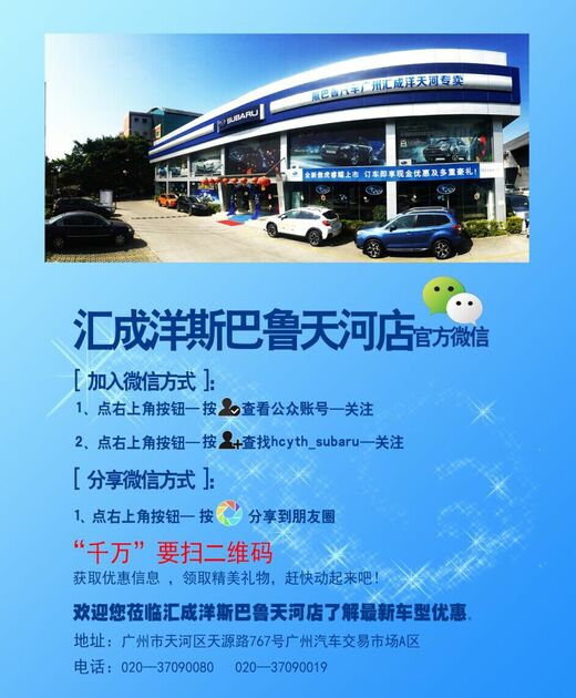 歡迎您蒞臨匯成洋斯巴魯各網(wǎng)點(diǎn),了解最新車型優(yōu)惠。