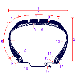 1.斷面寬度 2.斷面高度 3.胎面 4.胎肩